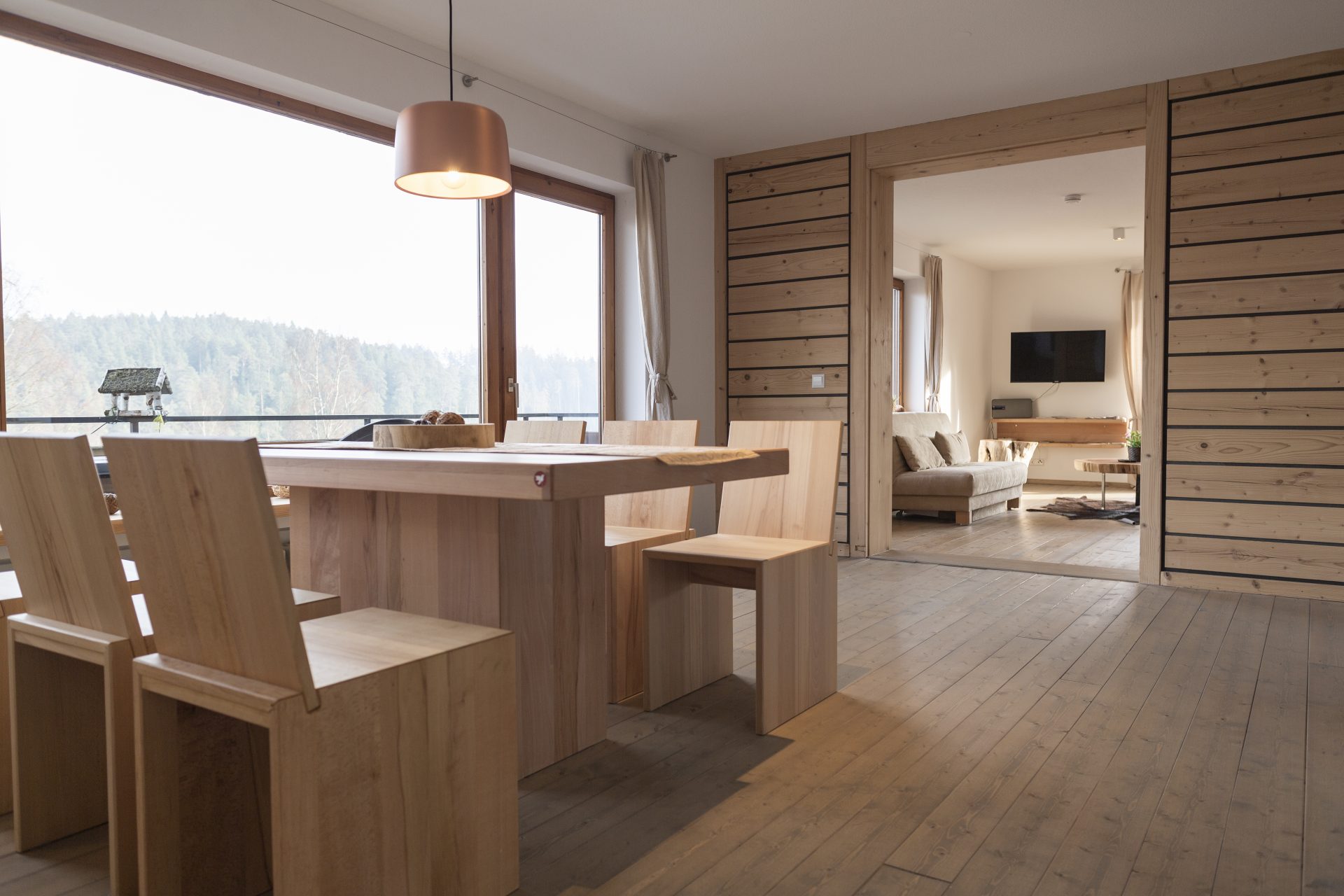 Stilvolle Holz- und Steinvertäfelungen sowie sorgfältig ausgewählte Naturmaterialien schaffen ein authentisches Hochschwarzwald-Flair und bieten Ihnen ein behagliches Wohnambiente.